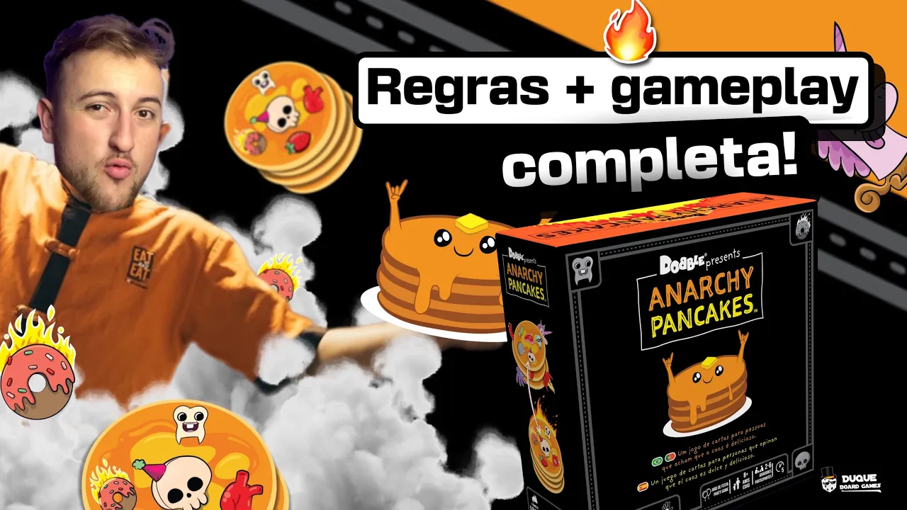 No rápido jogo de combinação Anarchy Pancakes, cada jogador começa com sete cartas de panqueca que apresentam várias coberturas desajustadas, como uma minhoca, um donut em chamas e uma caveira com um chapéu de festa.